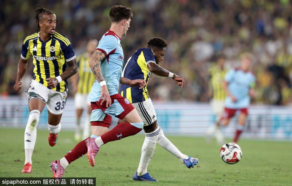 在随后的比赛中,费耶诺德的防守出现了失误。仅仅三分钟后,费内巴切的后卫阿奇·布朗抓住机会,头球扳平了比分。这一刻,比赛的节奏发生了改变,费内巴切迅速找回了自信。上半场补时阶段,利雅得纳斯尔租借来的前锋约翰·杜兰在恩内斯里的精准传球下,冷静推射得手,将比分反超至2比1。此时的总比分变为3比3平,场上的气氛瞬间变得紧张而激烈。